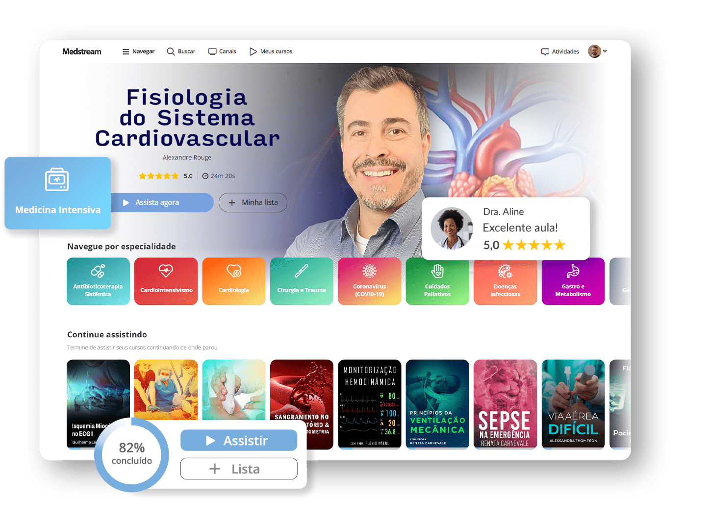 O Medstream dá acesso ilimitado a mais de 250 cursos de atualização que descomplicam diversos temas da medicina.